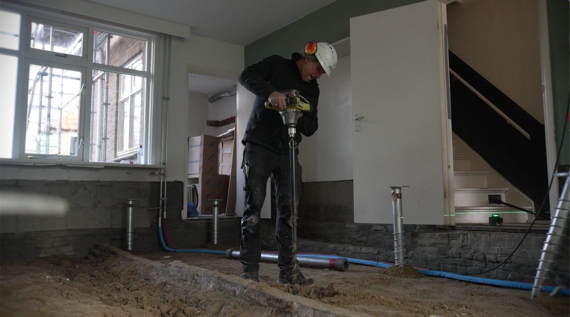 Voor dit renovatieproject hebben wij een robuuste en efficiënte fundering gerealiseerd middels schroefpalen in combinatie met een geavanceerde cassettevloer.